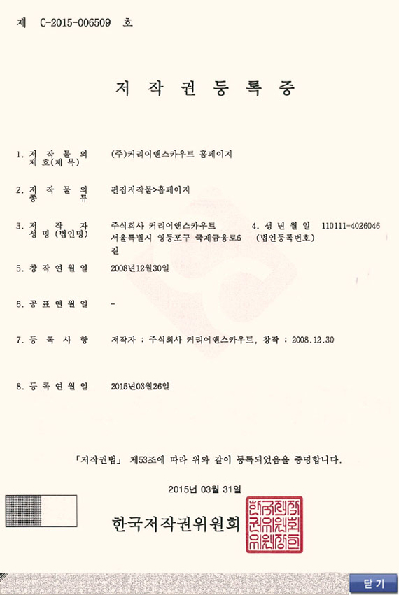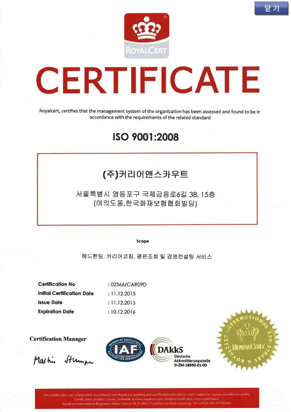 • 커리어앤스카우트는 ISO 인증 기업으로서